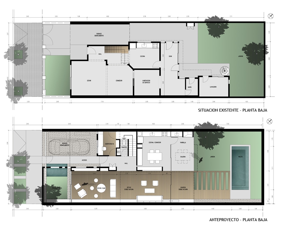 Proyecto de remodelación y ampliación sobre una vivienda existente.